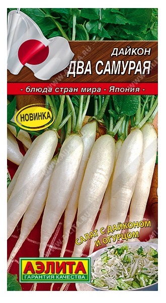 Дайкон, часто именуемый сладкой редькой или белым редисом, сбалансирован по составу и богат незаменимыми для здоровья веществами. Сорт среднеспелый, устойчивый к цветушности. Период от появления всходов до уборки урожая не более 70 дней. Ровные, гладкие, удлиненные корнеплоды достигают массы 1,5 кг. Мякоть плотная, без пустот, хрустящая, в меру острая. Сочные корнеплоды великолепно подходят для приготовления свежих салатов, гарниров и для маринования. Отличный выбор для карвинга (фигурная резка овощей для украшения стола).