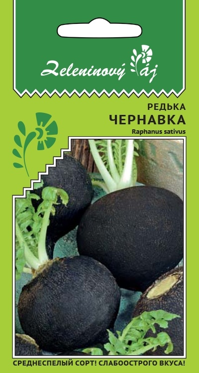 Сорт среднеспелый. От всходов до технической спелости 105-110 дней. Розетка прямостоячая, листья крупные, зелёные, черешок зелёный длиной 10-12 см. Корнеплод округлый, диаметром 8-10 см, массой 240-250 г. Поверхность корнеплода шершавая, чёрного цвета, мякоть белая, плотная, очень сочная, слабоострого вкуса. Устойчив к низким температурам и засухе.