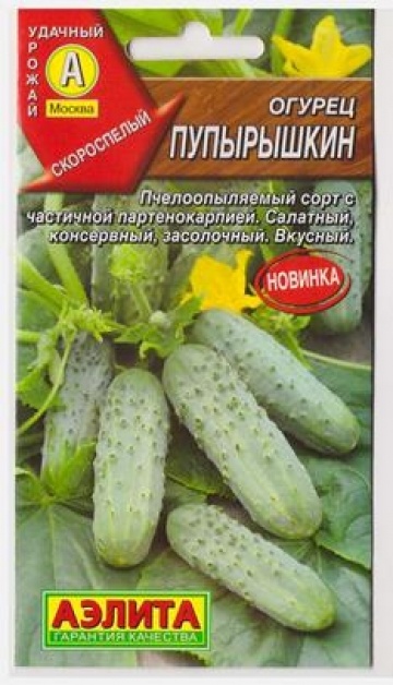 Новый скороспелый сорт для открытого грунта и пленочных укрытий. От всходов до плодоношения 38-45 дней. Пчелоопыляемый, с частичной партенокарпией (часть плодов завязывается без опыления пчелами). Растения среднеплетистые, преимущественно женского типа цветения. Плоды корнишонного типа, короткие (6-9 см), крупнобугорчатые, черношипые, ровные – один к одному. Назначение универсальное. Огурчики хороши в бочковой засолке и в традиционной баночной консервации. Урожайность под пленкой 10-12 кг/ м2 , в о/г – 3-5 кг/ м2 .