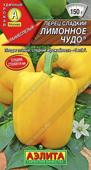 Раннеспелый сорт, рекомендуется для выращивания в открытом грунте и под пленочными укрытиями. Растения раскидистые, высокие. Плоды крупные, 3-4-х-гнездные, призмовидные, гладкие, золотисто-желтые. Масса плода до 150 г, толщина стенки перикарпия 6-8 мм, вкус отличный. Сорт хорошо переносит неблагоприятные условия выращивания. Великолепно подходит для свежего потребления, повседневной домашней кулинарии и консервирования. Урожайность – 4,5-5 кг/м2.