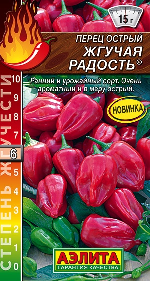 Сорт острого перца с привлекательным внешним видом и высокой продуктивностью. Раннего срока созревания – к уборке первых плодов приступают через 100-110 дней. Рекомендуется выращивать в защищенном и открытом грунте. Растения раскидистые, в теп лице высотой до 110 см. Плоды глянцевые, яркого насыщенного цвета и средней остроты. По упрощенной классификации жгучести относится к 6 группе (5000-15000 единиц по шкале Сковилла). Сорт используется для домашней кулинарии и консервирования. Сушеные перчики создают вкусовую основу для различных соусов и закусок. Урожайность в теплице 2-2,5 кг/м2 .
