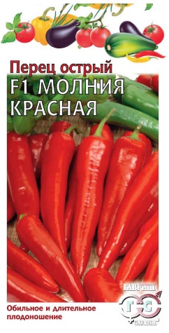 Раннеспелый (90-95 дней от всходов до технической спелости, 115-130 дней до биологической) гибрид. Растение раскидистое, высотой 100-115 см. Лист крупный, темно-зеленый, слабоморщинистый. Плод пониклый, узкоконусовидный, длинный, сильноглянцевый, в технической спелости зеленовато-белый, в биологической - темно-красный. Число гнезд 2-3. Толщина стенки плода 3-4 мм. Масса плода 100 г. Аромат перечный. Вкус полуострый. Урожайность товарных плодов при выращивании под пленочными укрытиями до 8 кг/кв.м. Рекомендуется для выращивания в открытом грунте и под пленочными укрытиями. Используется в консервировании и в домашней кулинарии. Схема посадки 30x40 см
