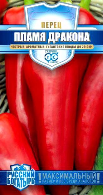 Раннеспелый (100-110 дней от всходов до плодоношения) сорт с гигантскими острыми плодами для пленочных теплиц и открытого грунта. Куст раскидистый, высотой 50-60 см. Плоды очень крупные, длиной 17-20 см, диаметром 5-6 см и массой 120 г, конусовидной формы, с заостренной верхушкой, гладкие, с ароматной острой мякотью. Окраска плодов в технической спелости светло-зеленая, в биологической — красная. Толщина стенки плода 4-5 мм. Измельченные плоды используют в качестве приправы, которая усыливает вкус и добавляет пикантности приготовленным блюдам. Посев на рассаду — в конце февраля. Пикировка — в фазе семядолей. Высадка рассады в грунт — в конце мая. Формировка: удаление всех боковых побегов и листьев до первой развилки. Схема посадки: 30x40 см.