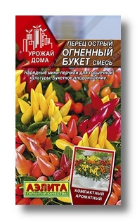 Симпатичная смесь острых мини-перчиков для горшечной культуры. Имеет двойное назначение: пищевое и декоративное. Срок созревания ультраранний, через 80-85 дней от всходов. Кустики нарядные, компактные, густооблиственные, высотой 20-25 см и шириной 20-30 см. Плодоношение букетное, по 4-6 штук. Перчинки конические, размером 3х4-5 см, направлены вверх. Плоды богаты фитонцидами. Аромат интенсивный, концентрированный. Степень остроты плодов зависит от освещения – чем светлее место, тем острее вкус. Растения неприхотливы в выращивании.