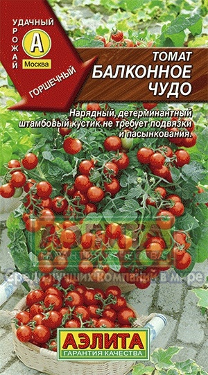 Нарядный миниатюрный сорт для выращивания в небольших контейнерах и в открытом грунте. Скороспелый, обильно плодоносит не позднее, чем через 100 дней от всходов. Подвязки и пасынкования не требуется. Детерминантный штамбовый кустик высотой 30-40 см отличается высокой завязываемостью плодов массой около 15 г. Формирует урожай 4-5 кг/м2. Плоды прекрасного сладкого вкуса, пригодны для свежего потребления и консервирования. Сорт устойчив к фитофторозу. Привлекает возможностью использования – не только как пищевого растения, но и декоративного.