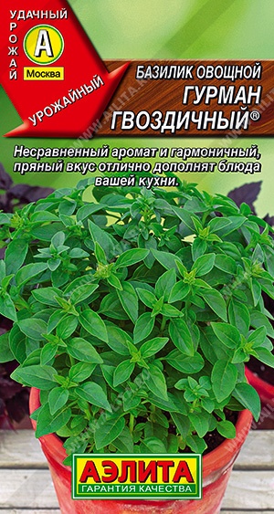Сорт с многогранным ароматом, в котором преобладает гвоздичная нота. Период от всходов до начала хозяйственной годности 50 дней. Растения сильно облиственные, высотой 35-45 см и диаметром до 45 см. Сорт устойчив к пониженным температурам. Зелень превосходно дополнит вкус рыбных, мясных, овощных блюд, супов и соусов. Урожайность 2,0-2,5 кг/м2 .