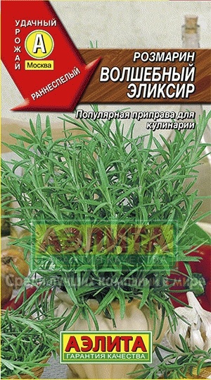 Популярное пряно-вкусовое растение. Ценится за чудесный аромат, который напоминает свежий запах моря. Чем больше света, тем ароматнее листва. В кулинарии используют листья и молодые побеги в свежем и сушеном виде. Сорт раннеспелый. В южных регионах – это многолетний, вечнозеленый кустарник высотой от 35 до100 см. Масса взрослого растения 300-400 г.Розмарин имеет высокие декоративные качества и используется в садовом дизайне.