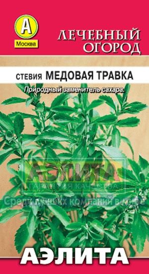 Лекарственный, травянистый многолетник. В средней полосе культивируется как однолетник. Кусты высотой 40-60 см, ? 20-30 см. Листья содержат стевиозид – подсластитель неуглеводной природы, который в 300 раз слаще сахарозы. Свежие и сушеные листья успешно заменяют сахар. Напиток с листьями стевии восстанавливает силы при физическом и нервном истощении, замедляет процесс старения.