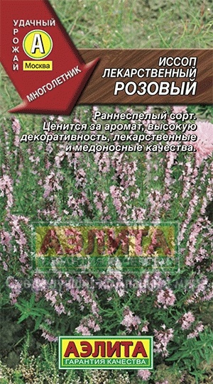 Многолетний полукустарник пряно-ароматической группы. Ценится за приятный интенсивный аромат, высокую декоративность, лекарственные, медоносные и пищевые качества. Сорт раннеспелый, с момента весеннего отрастания до начала цветения 80-85 дней. Формирует плотный куст высотой 50 см. Урожайность зелени 3-3,5 кг/м2. Вредителями и болезнями практически не поражается, зимует без укрытия. Листья и молодые побеги используют в свежем и сушеном виде в качестве приправы к разнообразным блюдам. Эфирное масло иссопа обладает антимикробным и противовирусным действием.