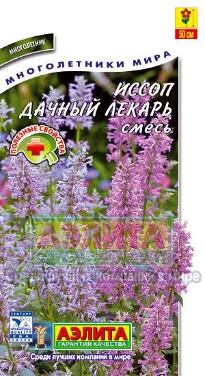Многолетний, зимостойкий и засухоустойчивый полукустарник. На одном месте растет 5 лет и более. От всходов до начала цветения 100-110 дней. Растения высокие, раскидистые, хорошо облиственные. Используют в свежем и сушеном виде в качестве приправы к овощным, мясным, рыбным блюдам и при консервировании. Благодаря своей декоративности, подходит для выращивания в цветниках. Отличный медонос. В состав смеси входят –иссоп лекарственный Голубой и Розовый. Урожайность зелени – 1,6-2,0 кг/м2.