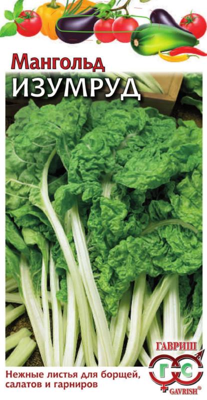Мангольд или листовая свекла ценная овощная культура из семейства Маревые. Листья и черешки мангольда по содержанию витаминов и минеральных веществ превосходят столовую свеклу. Сорт среднеспелый, от всходов до уборки урожая проходит 90-100 дней. Розетка листьев вертикальная, компактная, высотой до 50 см. Черешки широкие, сочные, светло-зеленого цвета, длиной 20-25 см. Листья сильногофрированные, темно-зеленые, необыкновенно нежные и вкусные. Посев в начале мая, на глубину 2,5 см. Допускается многократная срезка. Листья используются для приготовления голубцов. Черешки маринуют, тушат, делают икру, а также получают сок, который применяют для лечения болезней крови. Урожайность листьев и черешков 6-7 кг/м2.
