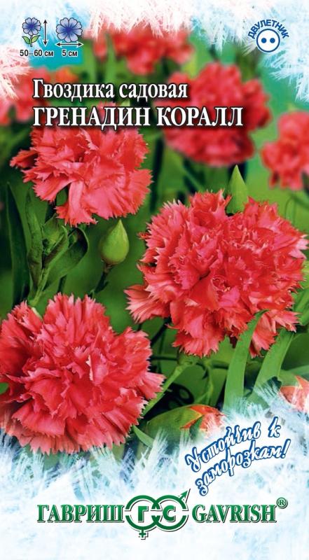 Популярное двулетнее травянистое растение для любительских цветников, формирует хорошо развитые кустики 50-60 см высотой. Стебли прямые, тонкие, коленчатые, облиственные. Листья узколинейные, прикорневые собраны в основании куста в розетку. Листья и стебли покрыты серебристо-сизым налетом. Цветки темно-лососевые, махровые, до 5 см в диаметре, расположены на концах побегов, с тонким ароматом. Цветет обильно на второй год после посева с июля по август. Неприхотлива, холодостойка, предпочитает солнечные участки с легкой, плодородной, некислой почвой. Посев проводят в конце мая – начале июня на рассадочные гряды в парник на глубину 0,5-1 см. Сеянцы в фазе 2-3 настоящих листьев продергивают или пикируют на расстояние 10 см между растениями. В августе рассаду высаживают на постоянное место на расстоянии 20-30 см. В первый год растение формирует розетку листьев. На зиму молодые растения желательно укрыть лапником. Используют для всех видов цветников и качественной срезки, в воде гвоздика долго сохраняет декоративнос