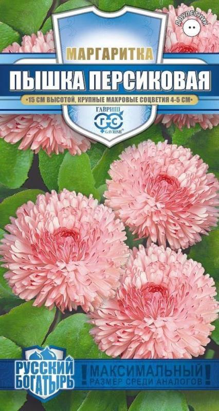 Маргаритка неприхотливое многолетнее растение, культивируемое как двулетнее. Имеет крупные, плотные как помпоны, махровые соцветия, диаметром 4-5 см. Кусты прочные пышные, одинакового размера, высотой 15 см, в пору цветения, обильно усыпаны соцветиями редкого лососево-розового оттенка. Используется в профессиональном и любительском садоводстве для выращивания на клумбах, рабатках, в бордюрах, а также в горшках и балконных ящиках. Предпочитает солнечные места без застоя воды. Хорошо переносит легкое затенение. Недостаток влаги в период цветения может привести к измельчению и полному исчезновению соцветий. Семена высевают в открытый грунт в конце июня-начале июля, поверхностно, не заделывая. Всходы появляются через 7-10 дней. Цветение начинается в апреле на второй год после посева. При хорошем уходе растение цветет до осени, с перерывом в жаркий период сезона.