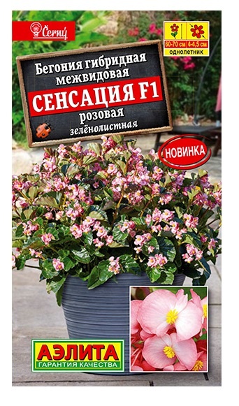 Неприхотливый теневыносливый межвидовой гибрид с яркими ажурными листьями. Мощные пышные кусты, высотой 60-70 см усыпаны некрупными розовыми цветками с весны и до первых заморозков. Растения не полегают во время сильных дождей и ветра, не выгорают на открытом солнце. От посева до цветения посадок проходит 12-14 недель. Бегония межвидовая прекрасно смотрится в крупных вазонах и в цветниках. Благодаря своей неприхотливости может с успехом выращиваться при минимальном уходе на приусадебных участках и на балконах (в крупных вазонах).
