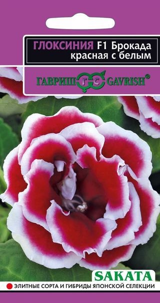 Роскошное и очень модное среди цветоводов комнатное клубневое растение из семейства Геснериевые. Великолепные махровые, красные с белой каймой цветки распускаются один за другим с мая по сентябрь. Низкорослое компактное растение с небольшими листьями. На взрослом растении образуется 10-25 крупных цветков, создавая впечатление нарядного букета. Глоксиния предпочитает светлые, солнечные места без воздействия прямых солнечных лучей. Во время цветения необходим обильный полив, еженедельные подкормки, влажный воздух (опрыскивание из пульверизатора). В октябре-ноябре, после цветения, полив и подкормку прекращают. Когда листья глоксинии засохнут, клубни вынимают из почвы и помещают на хранение в неглубокие ящички с чуть влажным песком или перлитом, которые устанавливают в помещении с температурой 10-12°С. После периода покоя (примерно 90 дней) клубни дадут новые ростки и их снова можно будет пересаживать в горшок. Семена на рассаду высевают поверх субстрата не заделывая в почву, с февраля по март, накрывают стеклом.
