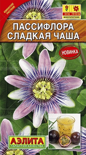 Неприхотливая в выращивании тропическая лиана, известная также под названиями «пурпурная гранадилла» и «маракуйя». Рекомендуется для выращивания в вертикальной и ампельной культуре в комнатах и зимних садах. Побеги длиной 3-4 м имеют красивые резные листья и прочные усы, которыми лиана цепляется за опору –решетку, шнур и т. п. Цветение длится с апреля по ноябрь. Оригинальные и ароматные самоопыляющиеся цветы со временем превращаются в экзотические душистые фрукты замечательного вкуса, размером с куриное яйцо. Летом растение можно держать на открытом воздухе, а перед заморозками вернуть в комнату или зимний сад.