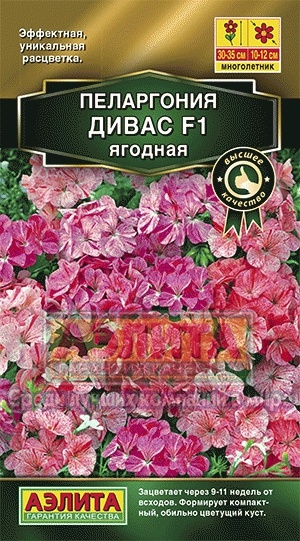 Гибриды ДИВАС F1 – прорыв в селекции зональной пеларгонии. Эффектные цветки в сочных «брызгах», обильное продолжительное цветение, безусловно, обеспечат новинке статус хита продаж. Уникальная расцветка гибридов достойна того, чтобы любоваться ими на собственном подоконнике или в цветнике, а не на картинке. Гибриды формируют компактные аккуратные кусты 30-35 см высотой и 25 см в диаметре, с крупными шаровидными соцветиями 10-12 см. Растут из семян быстро, зацветают через 9-11 недель от полных всходов. Неприхотливы в уходе, одинаково успешно украшают садовые цветники, комнаты и балконы.