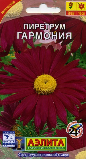 Пиретрум розовый – известный вид многолетних садовых растений. Знаком также как персидская ромашка. Сорт “Гармония” характеризуется яркими соцветиями и эффектным, щедрым цветением. Кусты с ажурной, сильно рассеченной листвой. Стебли ветвистые, достигают высоты 60-70 см. Соцветия крупные, Ø 9-10 см. Растения неприхотливые, вредителями и болезнями практически не поражаются. Используются для оформления цветников разных типов. Идеально подходят для срезки.