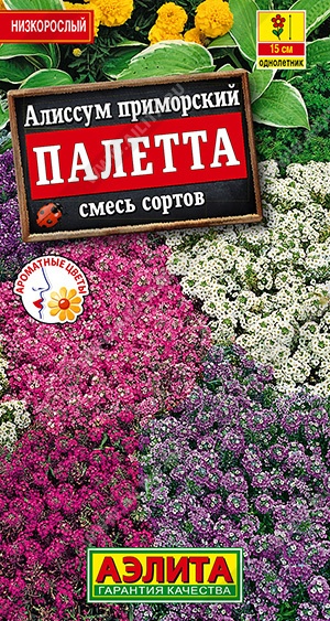 Яркая смесь неприхотливого летника с великолепным медовым ароматом. Образует низкорослые кустики высотой 10-15 см. Цветки мелкие, собраны в плотные кистевидные соцветия. Растения холодостойкие и светолюбивые. Предпочитают легкие, дренированные почвы с нейтральной кислотностью. Не любят переувлажнения. Смесь идеально подходит для окантовки цветников, оформления каменистой горки, контейнерного выращивания.