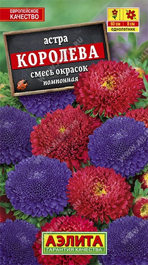 Смесь густомахровых астр с очаровательными помпонными соцветиями. Кусты высотой 55-65 см, хорошо разветвленные, крепкие, достаточно компактные. Соцветия плотные, яркой насыщенной окраски, Ø 7-8 см. Растения цветут в средние сроки. Продолжительность цветения около 60 дней. Назначение универсальное – оформление цветников и срезка.