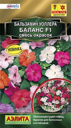 Уникальная смесь бальзаминов Баланс – это настоящая сказка у вас дома, словно облако разноцветных бабочек! Гибриды отличаются ранним, обильным цветением. Нежные красочные цветки Ø 2-3 см не опадают длительное время. Кустики высотой 15-25 см, компактные, хорошо разветвленные. Бальзамин неприхотлив. При недостатке освещения сохраняет красочное пышное цветение, а стебли не вытягиваются в длину. Смесь идеально подходит для высадки в балконные контейнеры, для украшения низкорослых клумб и окаймления садовых дорожек.