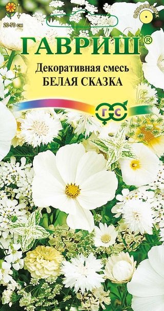 Смесь однолетников с белыми цветами. Неприхотливы. В смесь входят растения высотой от 20 до 70 см. Предпочитают открытые солнечные места, рыхлую почву. Полив умеренный. Посев на рассаду в конце марта-начале апреля. В мае подросшие и окрепшие сеянцы высаживают в открытый грунт. Прямой посев непосредственно в открытый грунт проводят в конце апреля-начале мая на площади около 2 м2. Всходы появляются через 5-7 дней. Отлично подходит для декоративного оформления садов. Цветение продолжается с июля по сентябрь. Послужит прекрасным украшением клумб и рабаток.