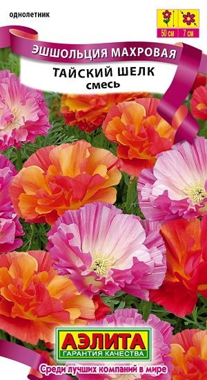 Один из самых неприхотливых летников для солнечных цветников. Формирует пышные кусты вы сотой около 25-30 см с ажурной листвой. Смесь расцветок является самой богатой из предлагаемых на рынке семян. Вы будете любоваться всем спектром эшшольции – от солнечно-желтого до пурпурного. Фактура лепестков шелковистая, с атласным блеском и легкой гофрировкой. Яркие махровые цветки Ø 6-7 см в изобилии раскрываются с июня до заморозков. Смесь рекомендуется для оформления клумб, альпийской горки, балконов, мавританского газона.