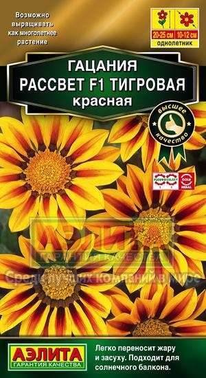 Гибриды гацании РАССВЕТ F1 имеют компактную, густую розетку серебристых листьев высотой 20-30 см. Цветение продолжительное – с июля до поздней осени. Крупные (10-12 см) эффектные соцветия, в центре которых жёлтую серединку окантовывает шоколадный браслет, напоминают «павлиний глаз». Цветы пригодны для срезки. Гибриды РАССВЕТ F1 отлично подходят для выращивания в контейнерах на балконе и в саду, в альпинариях, в цветниках различных типов. Гацания предпочитает солнечные сухие участки с дренированной, легкой, питательной почвой, хорошо реагирует на подкормки; засуху и жару переносит легко – идеально подойдет для цветника у южной стороны дома. Для увеличения продолжительности цветения осенью гацанию пересаживают в вазоны и заносят в дом. Чтобы сохранить гибрид до следующего сезона, его можно поставить в светлом прохладном помещении (+8+10°С).