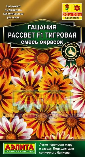 Гибриды гацании РАССВЕТ F1 имеют компактную, густую розетку серебристых листьев высотой 20-30 см. Цветениепродолжительное - с июля до поздней осени. Крупные (10-12 см) эффектные соцветия, в центре которых жёлтую серединку окантовывает шоколадный браслет, напоминают«павлиний глаз». Цветы пригодны для срезки. Гибриды РАССВЕТ F1 отлично подходятдля выращивания в контейнерах на балконе и в саду, в альпинариях, в цветниках различных типов. Гацания предпочитает солнечные сухие участки с дренированной, легкой, питательной почвой, хорошо реагирует на подкормки; засуху и жару переносит легко - идеально подойдет дляцветника у южной стороны дома. Для увеличения продолжительности цветения осенью гацанию пересаживают в вазоны и заносятв дом. Чтобы сохранитьгибрид до следующего сезона, егоможно поставить в светлом прохладном помещении (+8+10"С).