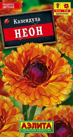 Эффектный, густомахровый сорт с оригинальной, двухцветной окраской. Соцветия-корзинки Ø 6-8 см долго не теряют декоративности. Пышное цветение начинается в июне и продолжается весь сезон. Красивые, компактные кусты высотой 60 см одинаково хороши и в сольной партии, и в составе смешанных цветников. Календула издавна популярна в садах Европы, как лекарственное растение и неповторимая пряность.