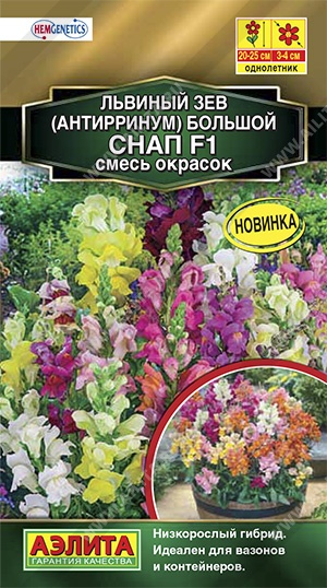 Новая серия низкорослого львиного зева с крупными цветками Ø 3-4 см, выделяющаяся яркостью и разнообразием глубоких насыщенных оттенков! Кустики с множеством боковых побегов, высотой 20-25 см. Цветки собраны в плотные объемные кисти. Цветение раннее, равномерное и продолжительное – вплоть до первых заморозков. Ароматная смесь станет поистине привлекательным украшением балконных контейнеров и уличных вазонов. Живописно впишется в состав смешанных низкорослых клумб и среднего яруса миксбордера.