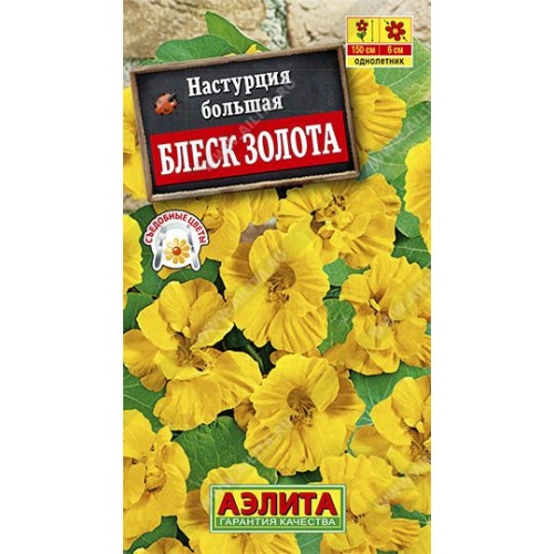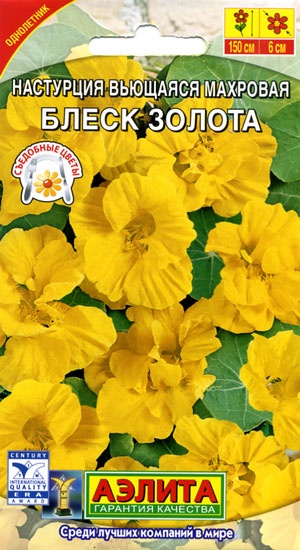 Однолетник. Высота 150 см. Диаметр 6 см. Великолепный махровый сорт настурции с обильным и продолжительным цветением. Побеги вьющиеся, длиной до 150 см, усыпаны цветками Ø5-6 см с июня до окончания сезона. Растения неприхотливые, тепло- и светолюбивые, растут быстро. Органично впишутся в любые композиции и украсят собой различные уголки сада. Отлично подходят для выращивания в подвесных корзинах, кашпо и балконных ящиках. Цветы и листья можно употреблять в составе салатов. Недозрелые семена используют в качестве приправы.