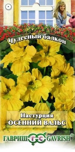 Одно из самых популярных растений для балконов различной экспозиции. Компактные настурции быстро завоевали признание. Их высаживают в подвесные корзины, вазы, контейнеры. Ценятся за легкость выращивания, оригинальную форму цветков, яркие расцветки. Растение однолетнее, теплолюбивое, не переносит даже легких заморозков;. к почвам неприхотливо, на питательных почвах «жирует» в ущерб цветению. Стебли прямостоячие, по мере разрастания стелющиеся и свисающие, длиной. 20-70 см высотой. Листья округлые, довольно крупные на длинных черешках. Цветки диаметром 5-6 см, яркие, золотисто-желтые с приятным ароматом. Цветет обильно с июня до заморозков. Теплолюбива и светолюбива. Предпочитает умеренно плодородные, влажные почвы. На питательных почвах «жирует» в ущерб цветению. Семена высевают в апреле в горшки (по 2-3 в лунку). Всходы появляются через 10-14 дней. В контейнеры растения высаживают, не нарушая земляной ком в конце мая-начале июня на расстоянии не менее 20 см.