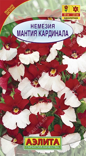 Трудно найти более нарядный сорт немезии, чем МАНТИЯ КАРДИНАЛА. Двуцветные, контрастные цветки диаметром до 3 см собраны в рыхлые соцветия и обильно украшают сильноветвистые кустики высотой 20-25 см. Цветение раннее и продолжительное, с июня до окончания сезона. Сорт довольно неприхотливый, холодостойкий, светолюбивый. Великолепно смотрится в подвесных корзинах и балконных ящиках, на клумбах и в бордюрах. Удаление потерявших декоративность цветков продлевает цветение. 20