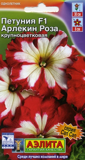 Петуния Арлекин F1 Роза – кустики пышные, высотой 25-30 см, в изобилии украшены цветками Ø 7-8 см. Растут быстро, хорошо ветвятся, устойчивы к болезням. Украсят бордюры, клумбы, контейнеры и подвесные корзины.