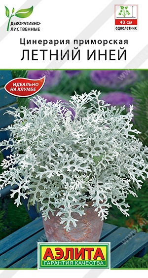 Декоративно-лиственный летник с очень красивыми листьями, которые покрыты белым войлоком, словно инеем. В южных регионах может выращиваться, как многолетник. Растение крепкое, компактное, высотой до 40 см. Сохраняет декоративность весь сезон, вплоть до первых заморозков. Цинерария прекрасно вы глядит в бордюрах, цветниках. Отлично выглядит в букетах. Подходит для выращивания в вазонах и кашпо.