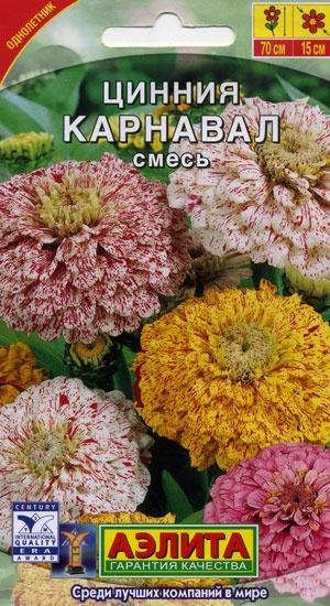 Предпочитаете «что-нибудь особенное»? Тог да обратите внимание на эту смесь цинний потрясающей расцветки. Растения крепкие, высотой около 70 см, неприхотливые. Развиваются они очень быстро и зацветают спустя пару месяцев после появления всходов. Соцветия многочисленные, крупные, диаметром 10-12 см, яркие, с красными штрихами, сохраняют декоративность до 30 дней. В смеси могут встречаться чистые окраски. Настоящее украшение сада! В срезке стоят до 10 дней. Чем больше увядших цветков удалить, тем больше появится новых бутонов!