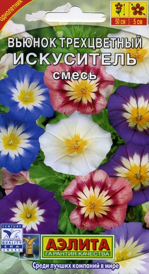 Нарядная смесь неприхотливого летника. Формирует компактные растения высотой 30-40 см, которые активно кустятся, выпуская множество боковых побегов. Вьюнок растет быстро, цветет обильно, пышно – растения буквально усыпаны яркими цветками в виде граммофончиков Ø 4-5 см. Смесь используется в качестве почвопокровной и ампельной культуры для оформления солнечных садовых цветников, балконных контейнеров, подвесных кашпо.