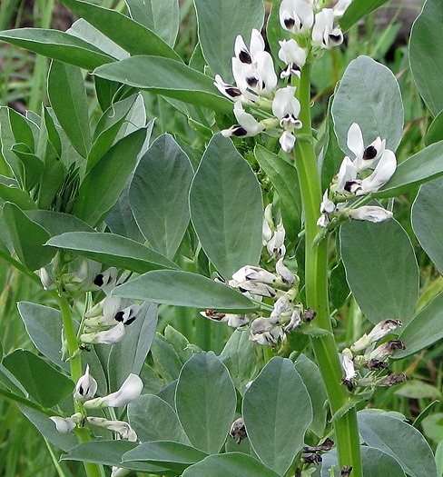 Кормовые бобы - однолетнее растение из семейства бобовых (мотыльковых). Стебель мясистый, прямостоячий, высотой 50—100 см и более. Листья парноперистые, состоящие из 2—3 пар крупных эллиптических листочков и заканчивающиеся нитевидным острием. Прилистники крупные, с внецветковыми нектарниками. Цветки сидят по 2—6 в пазухах листьев. Венчики мотылькового типа, белые с черными пятнами на веслах. Плод — крупный боб, покрытый волосками. Семена у кормовых сортов белые или коричневые. Зацветают кормовые бобы в средней полосе через 1,5 месяца после посева. В условиях достаточного увлажнения цветет более месяца. Медоносное растение - нектаропродуктивность в зависимости от сорта колеблется в пределах 15—30 кг сахара с 1 га. В ряде случаев пчелы берут нектар, проникая в цветок через отверстия, прогрызенные шмелями у основания венчика цветка. Внецветковые нектарники также охотно посещаются насекомыми.