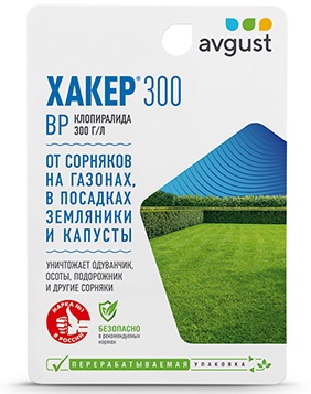 Гербицид Хакер, ВРГ - системный гербицид для борьбы с однолетними и многолетними двудольными сорняками (одуванчик, ромашка, бодяк, виды осота, паслён и др.) на газонах. Используется в личных подсобных хозяйствах, дачных участках, коттеджных поселках и прочих населенных пунктах подобного типа. По своему действующему веществу аналогичен препарату Лонтрел 300-Д.