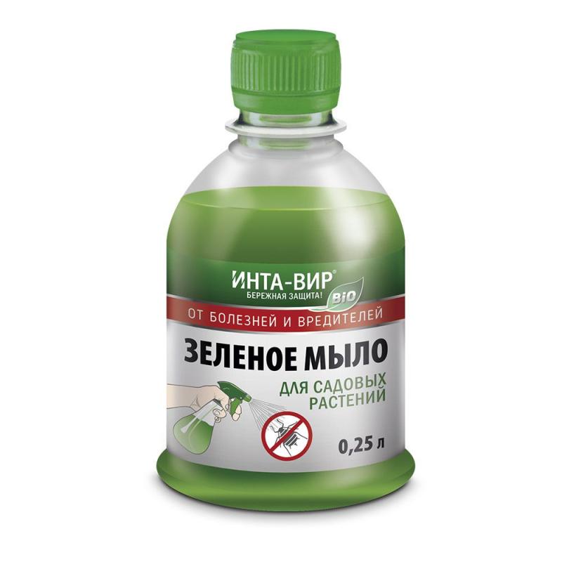 Опрыскивание раствором зеленого мыла - предотвращает распространение вредителей (тли, паутинного клеща, цветоеда идр.) и болезней (мучнистой росы, парши, фитофтороза и др.). Из расчета 250-400 мл на 10 л воды.