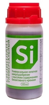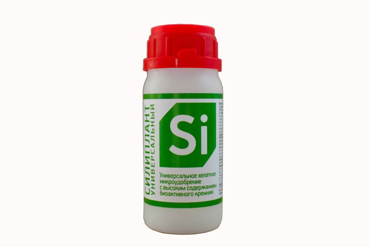 Силиплант – универсальное удобрение с высоким содержанием биоактивного кремния (Si-7%) , калия (K-1%) и микроэлементами в хелатной форме: Fe – 0,3; Mg – 0,1; Cu – 0,7; Zn – 0,08; Mn – 0,3; Co – 0,015; B – 0,09. Повышает прочность растений, устойчивость к болезням, вредителям, засухе. Улучшает плодородие почвы.