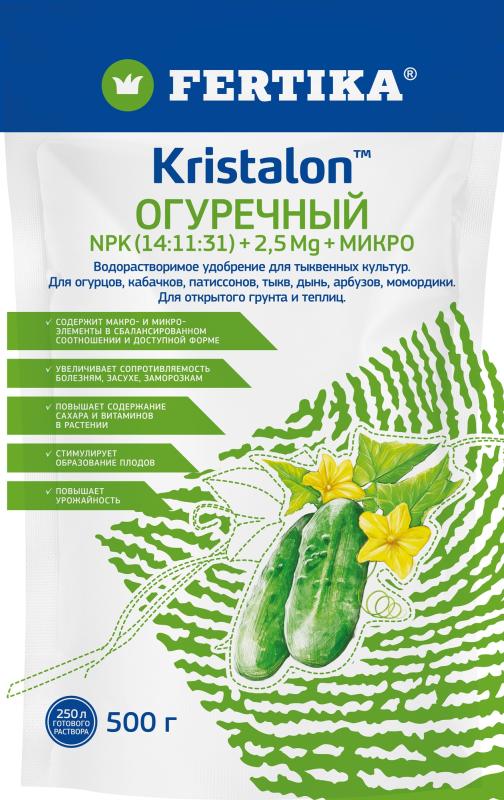 Имеет хорошо сбалансированный макро- и микроэлементный состав для использования при выращивании всех культур семейства тыквенных, в том числе огурца в открытом грунте и теплицах