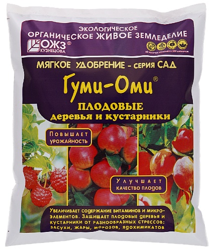 Порошково–гранулированное удобрение с необходимыми для питания плодовых деревьев и кустарников макро- и микроэлементами и эликсиром плодородия Гуми. Повышает урожайность, плодородие, улучшает структуру почвы и улучшает качество продукции.