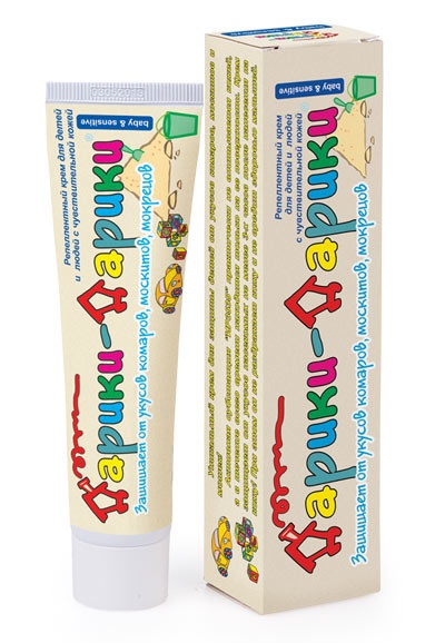 В качестве действующего вещества содержит субстанцию «IR3535», производимую немецкой фирмой «MERK». Это вещество (практически единственное в мире) обладает отличными репеллентными свойствами и самой низкой токсичностью для кожи. Дело в том, что оно практически не впитывается кожей, а в течение всего времени находится только на ее поверхности. Препараты, сделанные на его основе, разрешены даже для детей от одного года! Раньше при разработке детского репеллентного крема производители никак не могли решить проблему противоречия между эффективностью и безопасностью продукта. Хорошо отпугивающие насекомых крема были небезопасны для детей, а те препараты, которые рекомендовались для малышей, обладали, увы, лишь слабым репеллентным действием. Крем «Дарики-Дарики» — это уникальное сочетание мягкой, безопасной для детей формулы и высокой эффективности. Он защищает детей и подростков от укусов насекомых не менее трех часов после нанесения на кожу! При этом он не раздраж