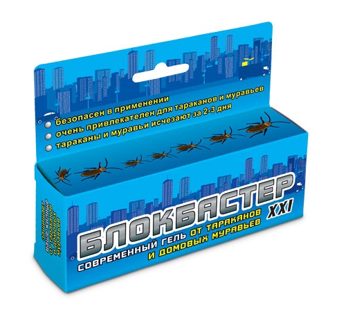 Можно ли полностью уничтожить тараканов, да еще без вреда для собственного здоровья? И чтобы при этом забыть о них на годы? — Да, можно. Именно этому служит новый супер — гель «Блокбастер XXI». Это современное, инновационное средство. Отличительное свойство этого геля в том, что он содержит в своем составе сразу два действующих вещества (тиаметоксам и альфа-циперметрин). Они усиливают действие друг друга и уничтожают даже самых устойчивых тараканов. Гель «Блокбастер XXI» уже через 2-3 дня полностью истребит всех тараканов в Вашем доме. Гель обладает «каскадным» эффектом: даже один съевший его таракан передает смертельную дозу яда своим сородичам в количестве до 50 штук. Входящие в его состав привлекатели заставляют тараканов предпочитать эту приманку любой другой пище. Гель «Блокбастер XXI» не портится, не высыхает и не теряет своей эффективности очень долгое время. Гель удобен в применении, легко наносится в труднодоступные места. Не имеет неприятного запаха, не выделяет в воздух вредных веществ и может прим