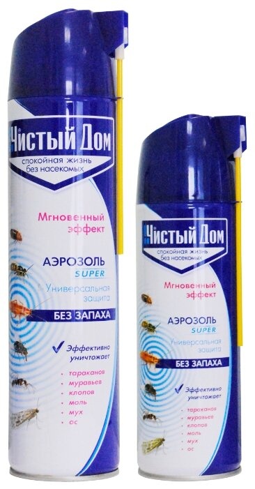 Для защиты взрослых людей от кровососущих насекомых . Наносить можно на кожу и на одежду. Способ применения: перед применением встряхнуть баллон. Летающие насекомые (мухи, комары, мошки): обработку начинать с противоположного от входа конца помещения, постепенно отступая к входу, нажимая на распылитель и направляя струю "Чистый Дом аэрозоль супер" в воздух и на места скопления насекомых. Обработку проводить при закрытых окнах и дверях. Моль: направить струю "Чистый Дом аэрозоль супер" с расстояния 20 см на поверхность изделий из шерсти и меха, а также, места их хранения; Кожееды: плинтусы под радиаторами отопления и кроватями, подоконники, обратную сторону шкафов и полок; Осы: обработка гнезд. Ползающие насекомые: держа баллон вертикально, нажать на распылитель и с расстояния 20 см направить струю "Чистый Дом аэрозоль супер" в возможные места обитания, скопления и передвижения насекомых. Для уничтожения тараканов, постельных клопов, муравьёв: обработайте щели вдоль плинтусов и прилегающие к ним участки стен